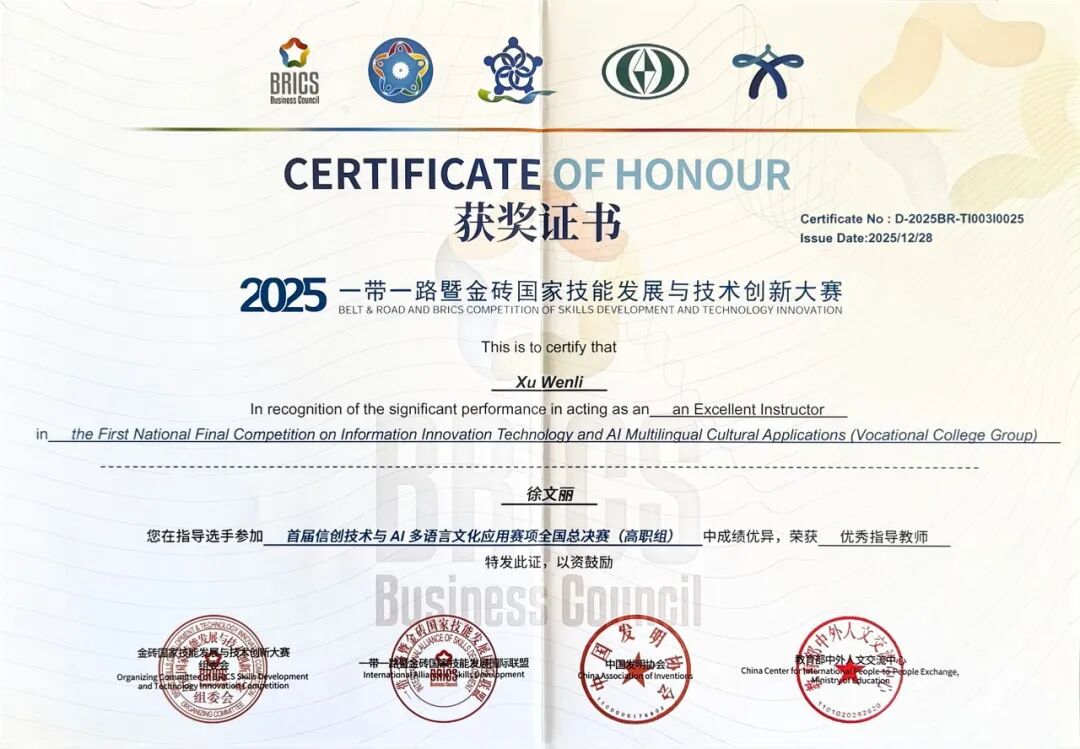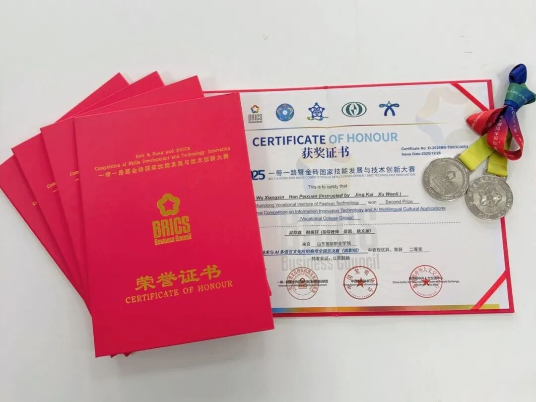 山东服装职业学院学子获2025一带一路暨金砖国家技能发展与技术创新大赛“首届信创技术与AI多语言文化应用赛项”全国总决赛二等奖