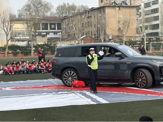 此外,民警通过专业演示,清晰解析了汽车转弯“内轮差”原理带来的安全隐患,帮助学生深刻理解保持安全车距的必要性。活动特别设置“车辆盲区体验”环节,引导学生进入驾驶室实地观察,切身体验车辆周边存在的视觉盲区,建立防御性驾驶思维。