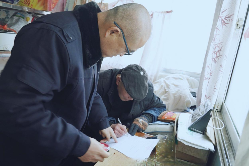 图为工作人员上门为偏远山区老年零售户办理业务