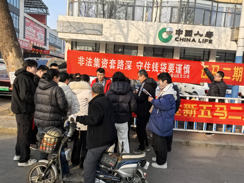 为切实守护群众财产安全,筑牢岁末年初金融安全防线,中国人寿泰山区支公司春节前夕在五马市场开展防范非法集资专题宣传活动,以“接地气、贴民生”的方式,把防非知识送到百姓身边。