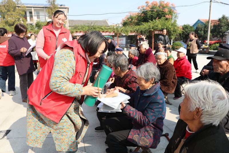 仪式结束后,工作人员与志愿者主动上前,一边热情地为老人分发物资,一边关切地询问他们的身体状况与生活近况,“您平时要注意保暖,有困难随时跟我们说”“这些东西您拿好,希望您过个舒心的重阳节”,一句句贴心话语,让老人们脸上满是笑容。“这个艾草锤捶腰特别舒服,平时累的时候能用”“小夜灯太实用了,起夜再也不用摸黑了”,老人们拿着这些小巧贴心的物品,不住地向工作人员表达感谢。不少老人表示,今年的重阳节格外热闹、格外暖心,不仅收到了生活必需品,还感受到了来自福彩志愿者们的重视与关爱,心里特别踏实。