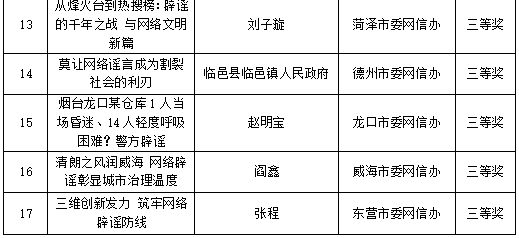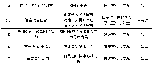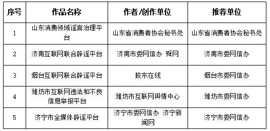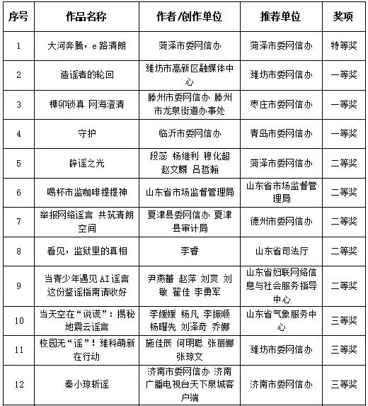 附:2025年度山东省互联网辟谣优秀作品获奖名单