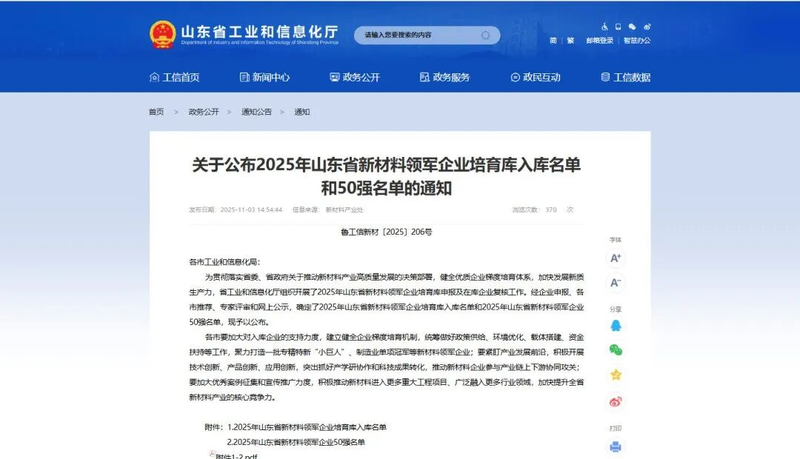 山东路德新材料股份有限公司及子公司泰安路德工程材料有限公司均入选2025年新材料领军企业培育库入库企业公示名单。其中,山东路德新材料股份有限公司凭借技术创新能力、领先的行业地位,成功入选山东省新材料领