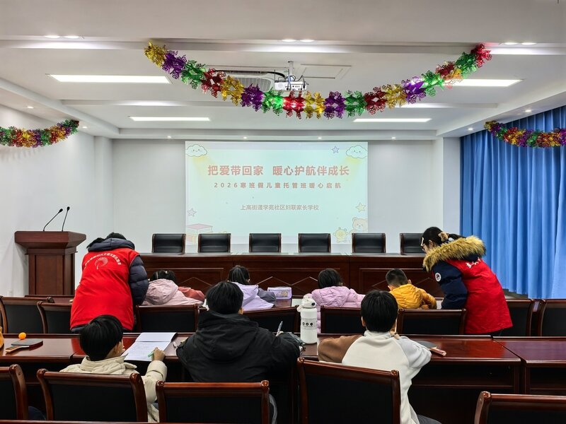 上高街道学苑社区妇联依托社区家长学校,2月5日正式启动“把爱带回家·暖心护航伴成长”2026寒假儿童托管班,以公益托管筑牢假期守护防线,用多元课程点亮少年成长之路,让社区的温暖陪伴填满孩子们的寒假时光